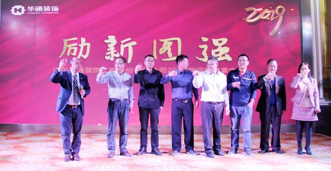 2019年1月28日晚上6点,广东华通装饰工程股份有限公司在天悦大酒店聚贤殿,成功举办《励新图强2019新春联欢晚会 》,公司员工及家属、施工班组和供应商 300 余人出席晚会。