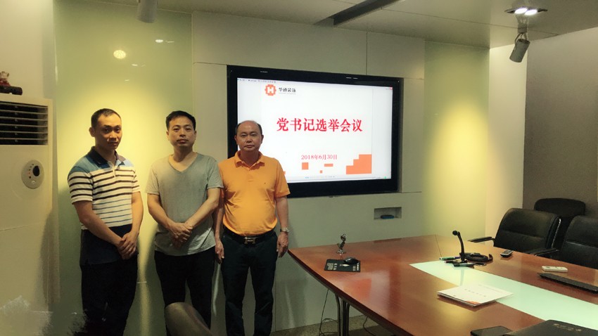 2018年6月30日上午10点,在广东华通装饰工程股份有限公司会议室,召开了党书记选举会议,中国共产党广东华通装饰工程股份有限公司支部委员会正式成立,贺妙忠同志 当选为党支部书记,涂为良、刘剑锋同志为支部委员。