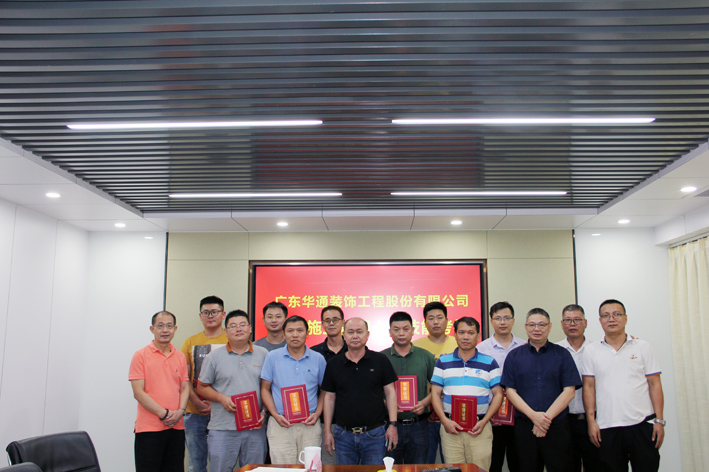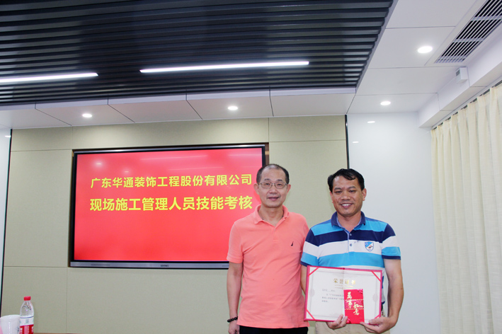 2020年7月31日晚上19点整,广东华通装饰工程股份有限公司在总部会议室进行“现场施工管理人员技能考核”,公司高管5人对 现场施工管理人员进行了问答考核,并采取无记名打分的方式评选出优秀奖、优胜奖、优良奖和鼓励奖,公司部门经理和项目经理10余人参与了现场观摩。